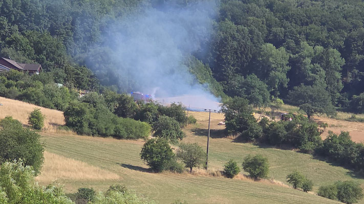 Die Feuerwehren Höringen, Lohnsfeld, Imsbach, Steinbach, Münchweiler, Winnweiler, Otterberg und Gehrweiler wurden zu einem Rundballenbrand im Bereich der Leithöfen alarmiert.