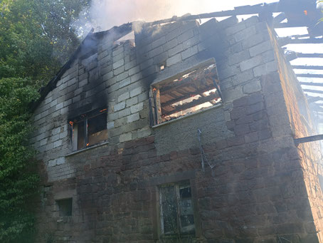 Es brannte ein leerstehendes Gebäude welches von starkem zerfall bereits betroffen war. Dieser Umstand erschwerte die Brandbekämpfung da der Zugang nur sehr schwer möglich war und eine akute Einsturzgefahr bestand. Es wurde ausschließlich mit Sicherheitsabstand von außen gelöscht. Für einen langfristigen Erfolg zu erzielen wurde bei den Nachlöscharbeiten Löschschaum eingesetzt.